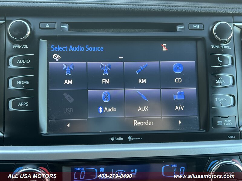 - Infotainment and connectivity: Toyota Entune system with a center touchscreen, Bluetooth hands-free phone and audio streaming, USB and auxiliary inputs for portable devices, steering-wheel audio and phone controls, and a multi-information display to keep important vehicle information handy.