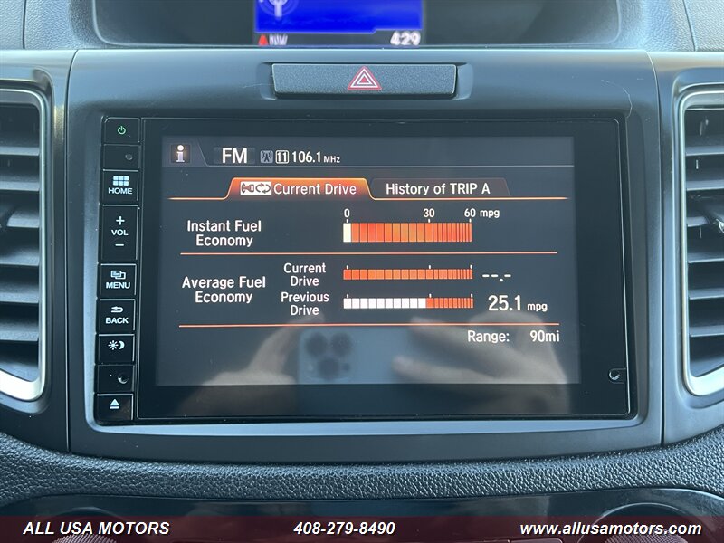 Meet the 2016 Honda CR-V EX-L — a comfortable, well-equipped compact SUV finished in eye-catching Basque Red Pearl II with a clean Gray leather interior. Under the hood it’s powered by Honda’s reliable 2.4L inline-4 that delivers 185 hp and 181 ft-lbs of torque, mated to a smooth continuously variable transmission (CVT). That combination yields an efficient EPA estimate of 26 MPG city and 33 MPG highway, making it a great daily driver for commuting or weekend trips.